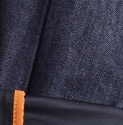 man wearing dark blue slim fit waterproof stretch jeans front