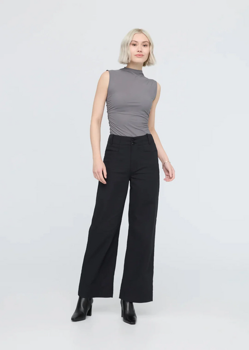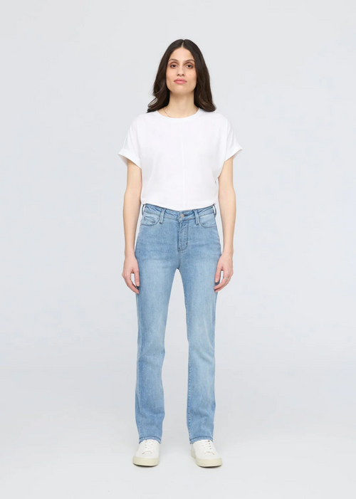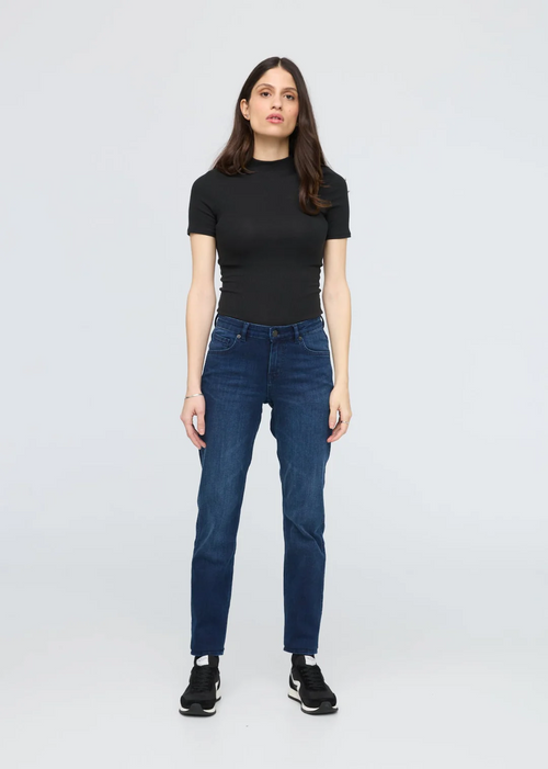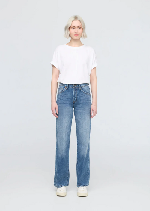 Mid rise in a relaxed fit with a slightly tapered leg.